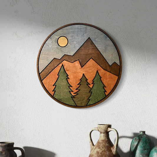 Wall Art - Mountain Landscape - 18" Round Wooden Artwork